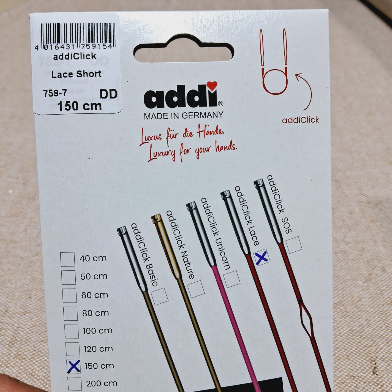 Червоний колір шнура характеризує наші голки з наконечниками Lace. Тому червоні шнури входять до всіх наборів addiClick Lace. Їх також можна використовувати з усіма іншими голками addiClick.