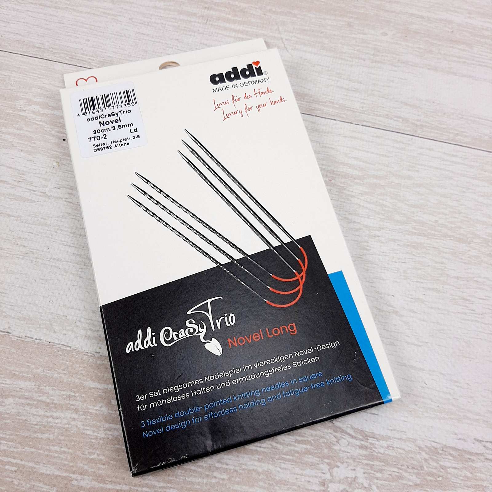 ADDI CraSy Trio Novel Long — це ергономічні кругові спиці із закругленими квадратними кінчиками NOVEL і злегка ребристою ручкою.