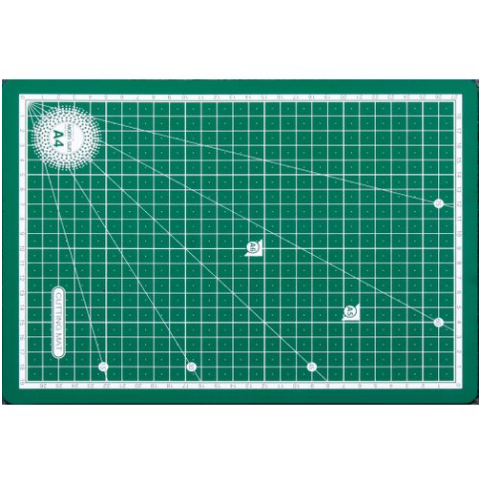 Тришаровий професійний високоякісний килимок, що самовідновлюється, має базовий зелений колір з розмічальною сіткою. На килимок нанесена метрична та дюймова шкала. Гладка поверхня не тупить леза, надрізи практично непомітні.