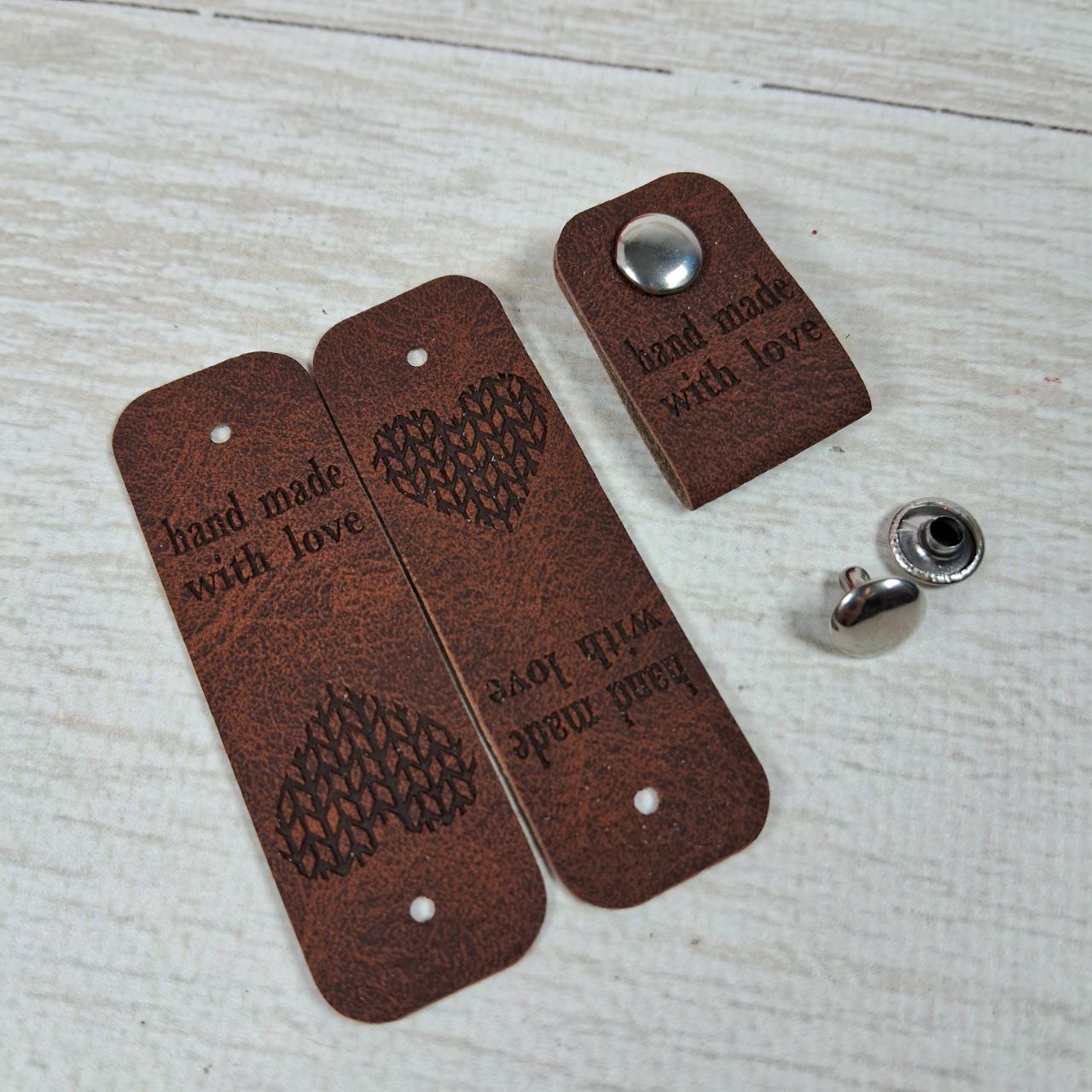 Шкіряна бірка Love темно-коричнева 6,2*2см