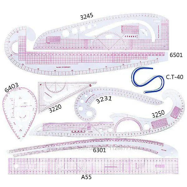 Портновское лекало лінійка для побудови пройм, окатов, горловин №5