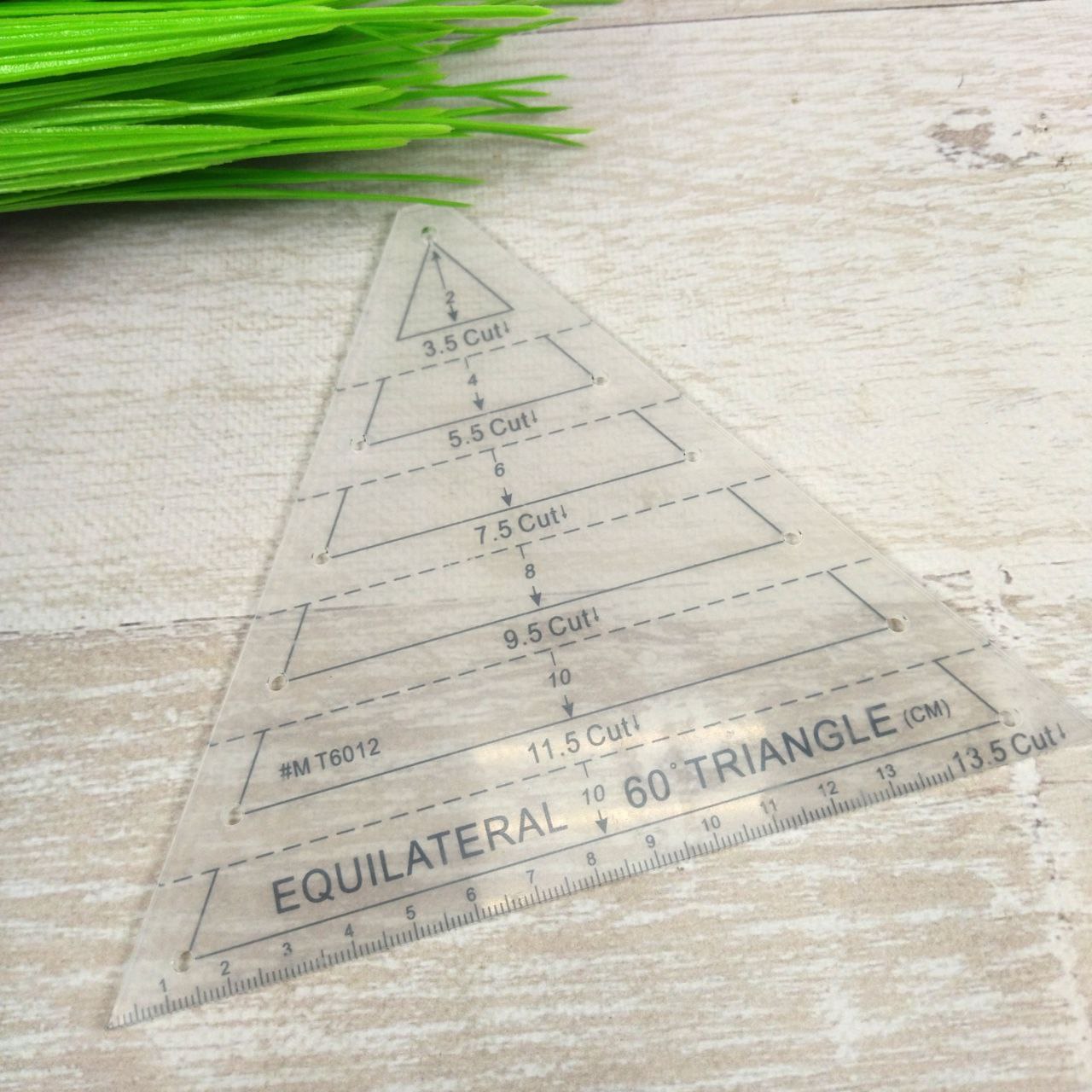 Лінійка призначена для виготовлення трикутників висотою від 2 до 12 см з кутом 60 o . Використовується в пічворку для техніки “Зірки” або “Калейдоскоп”. Виготовлена із міцного акрилу товщиною 3мм.