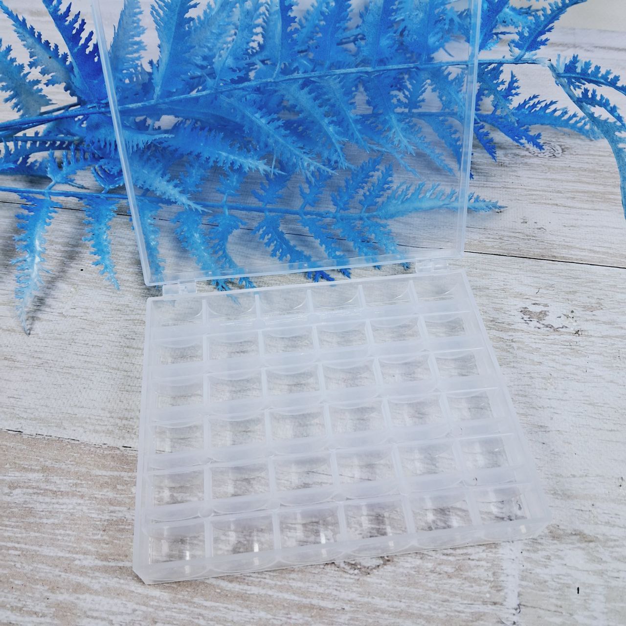 Контейнер для Шпульок, Пластик, 36 Відсіків, Колір: Безбарвний, Прямокутний, Розмір: 11.8×14.2×3.1см, (УТ100030388)