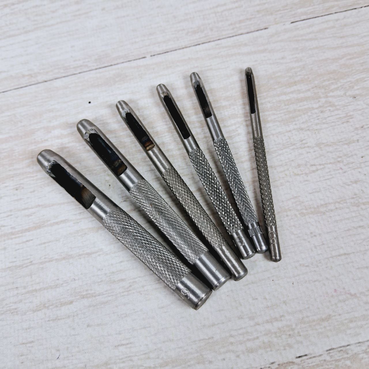 Цей пробійник має круглу форму та різні розміри отворів, що дозволяє вибирати відповідний діаметр залежно від конкретного проекту. Він може використовуватися для пробивання отворів у картоні, шкірі та інших матеріалах.