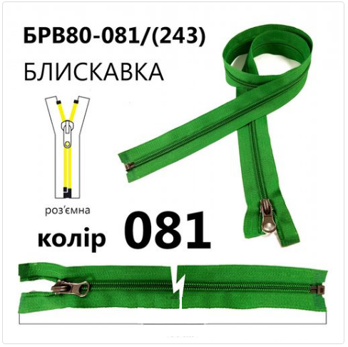 Главная страница » Магазин » Швейка » Молнии Бігунки » Молния разъемная справа, витая, Т5, 80см, нейлон, 081 зеленый