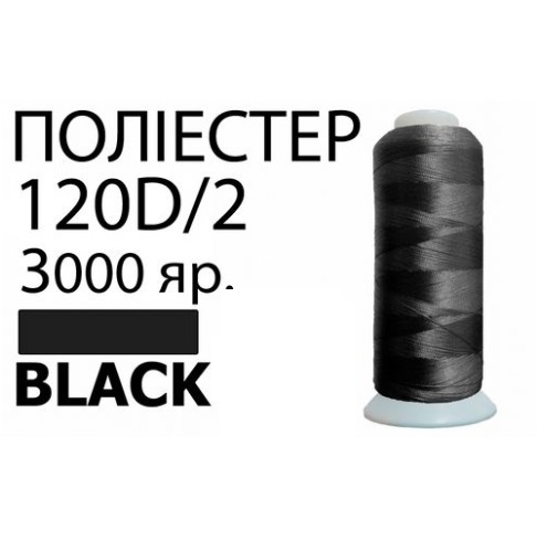 Нить Полиэстер 120D/2 3000ярд 3000 черный ПВЗ-bk-3000