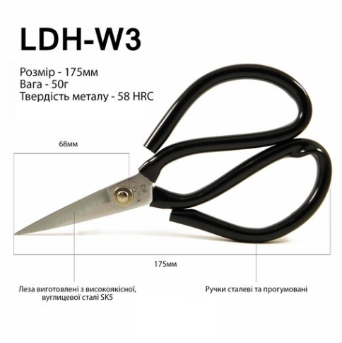 Ножиці для шкіри, 175мм, руч. прогум. , кована сталь SK5, 58 HRC, LDH