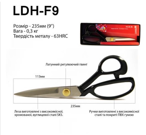 Ножиці закрійника 235мм (9′), руч. прогум., Коване залізо SK5, 63 HRC, LDH-F9 49282
