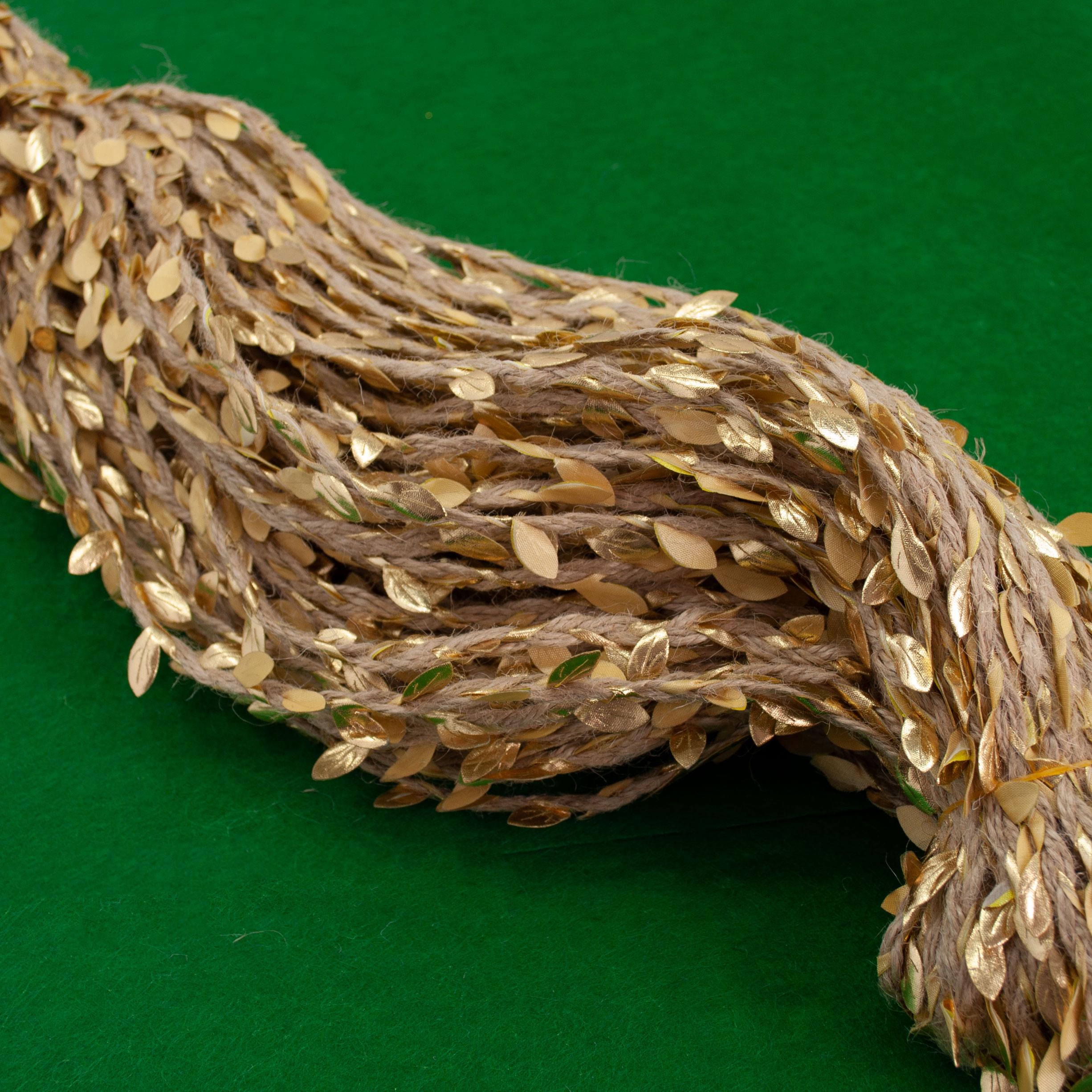 Шнур декоративный косичка с плющем 2см мешковина с золотом 19IL11017-1