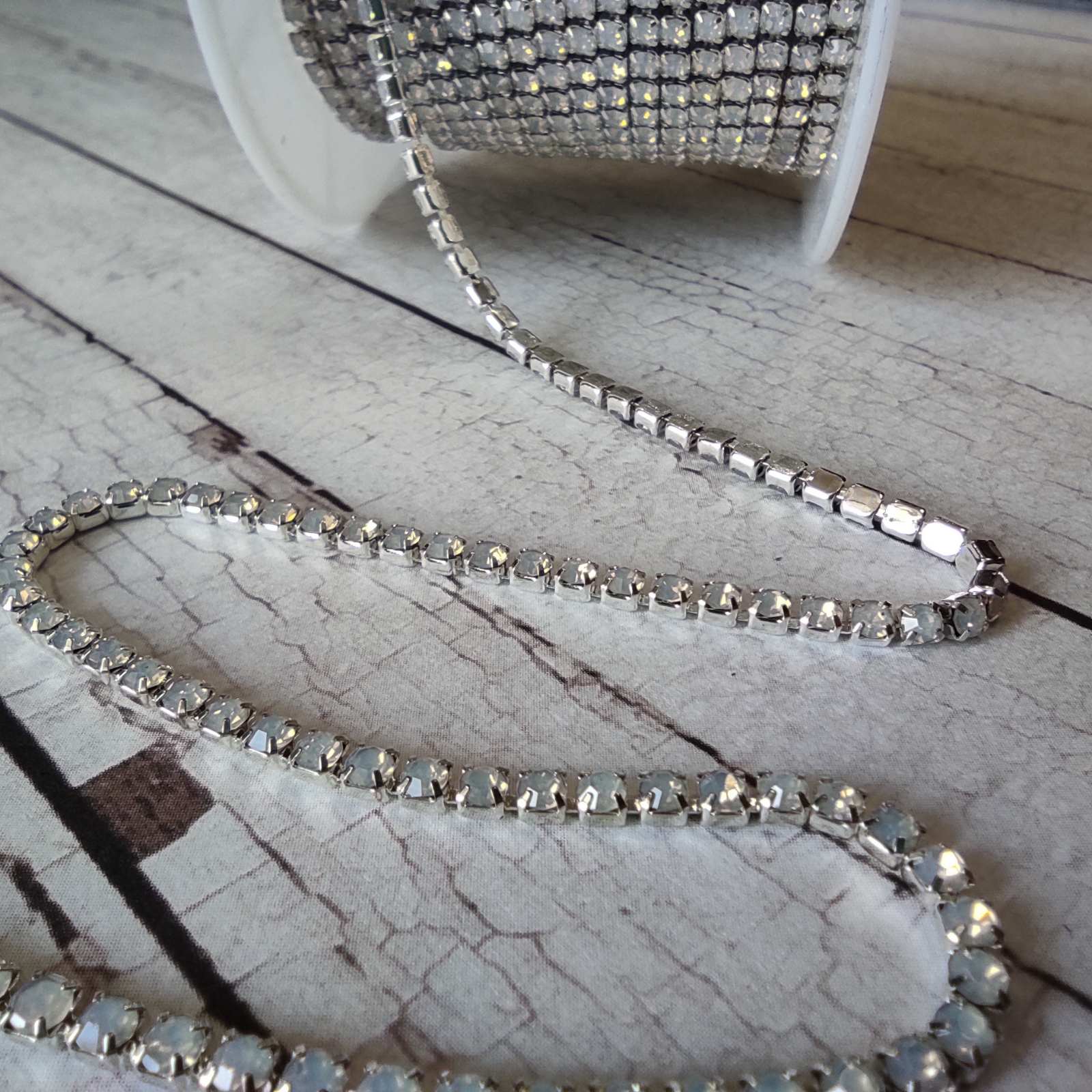 Стразовий ланцюжок ss6 2мм S-13 опаловий в срібному металі