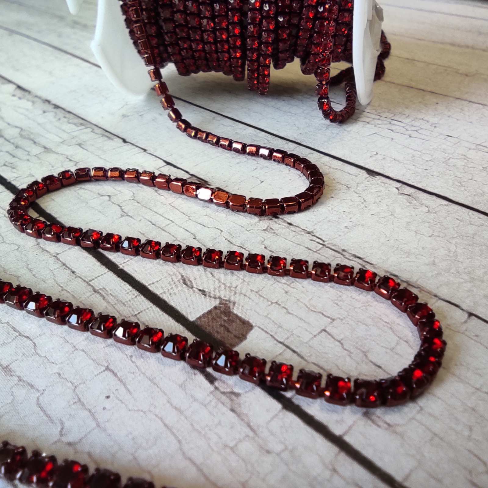 Стразовий ланцюжок ss6 2мм S-17 червоний в червоному металi