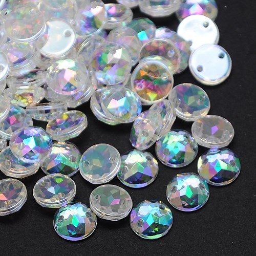 Пришивные Акриловые Стразы, 2 отверстия, Круглые, Граненые, Цвет: Разноцветный, Размер: 8х3мм, Отв-тие 1мм