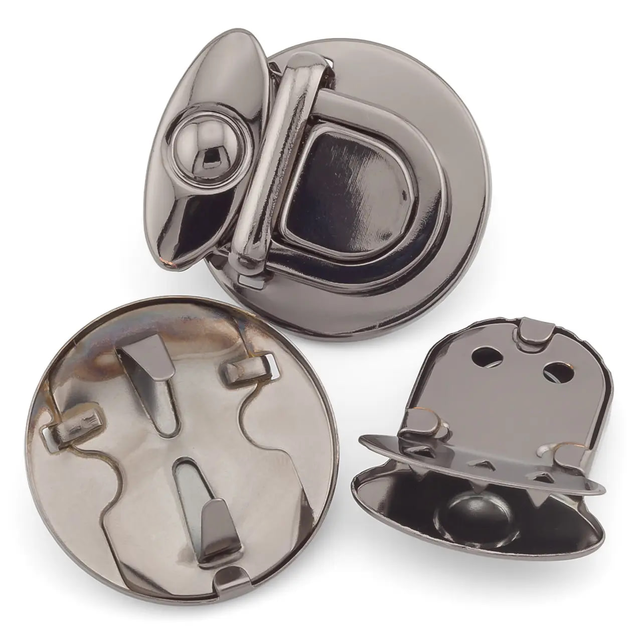 Верхня частина (розміри 25х30мм) має посадкове місце та кріпиться до клапана сумки за допомогою трьох шипів.