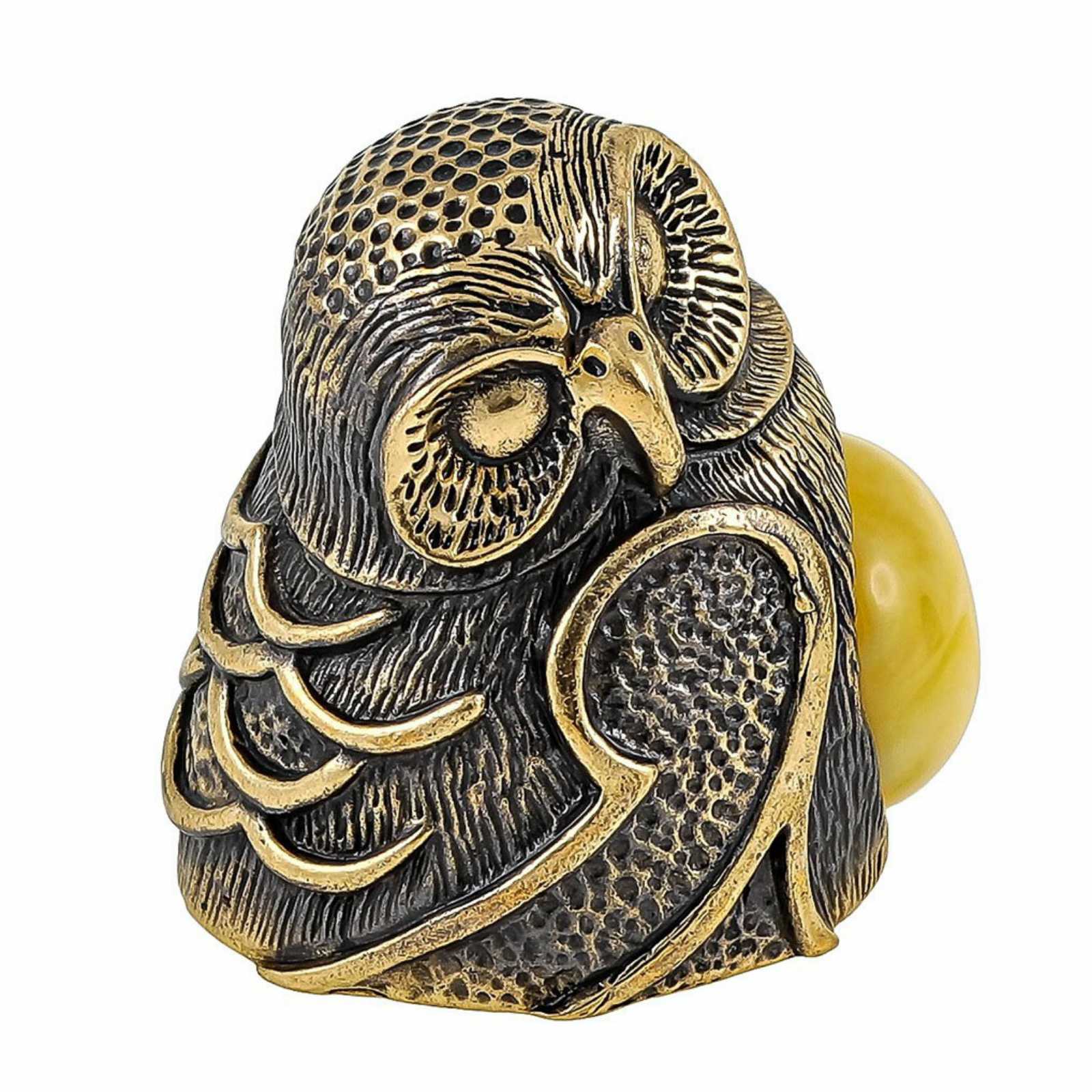 Наперсток из бронзы и янтаря Сова Неясить №1807К