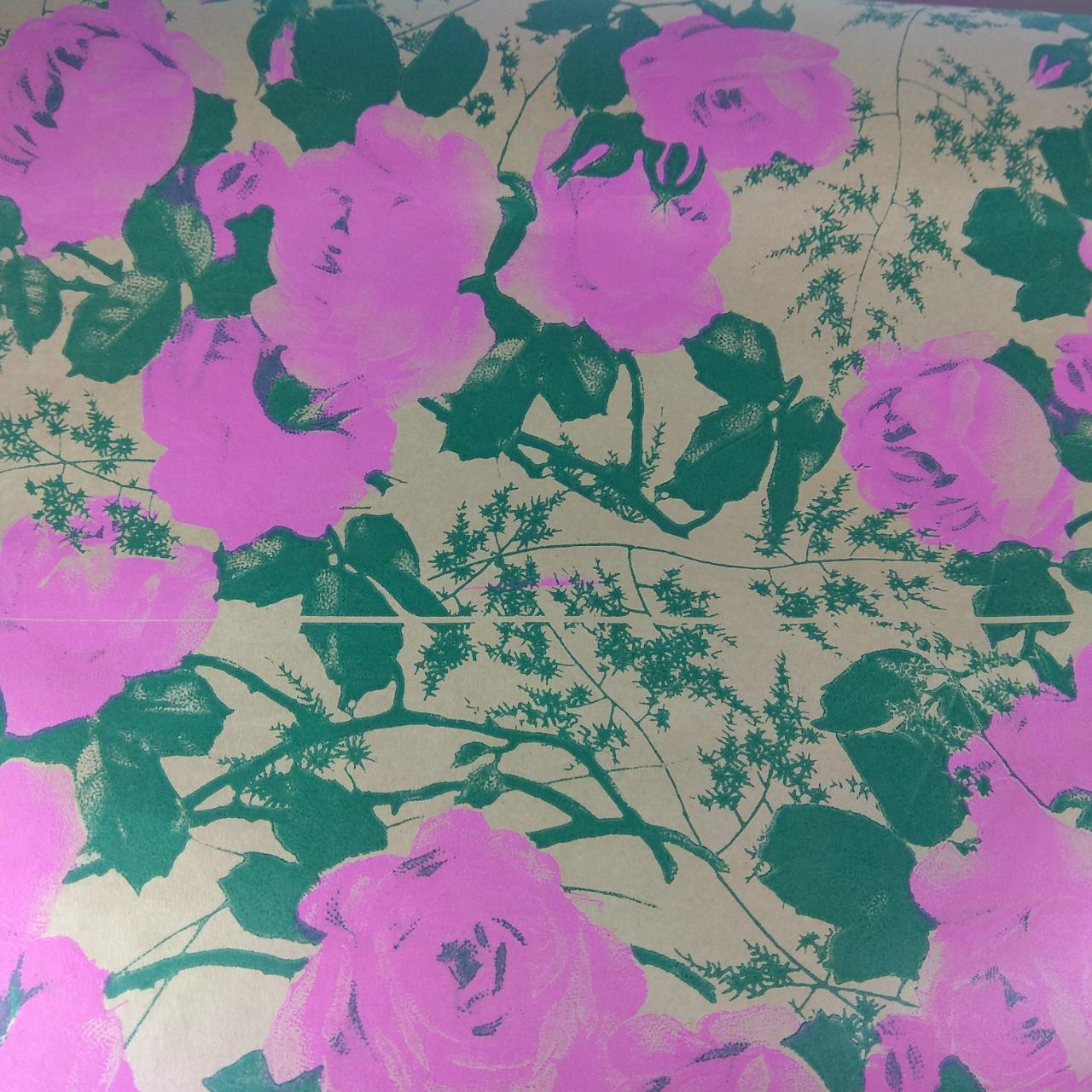 Упаковочная бумага Ретро Крафт 50см розовые розы Цена указана за 1 метр