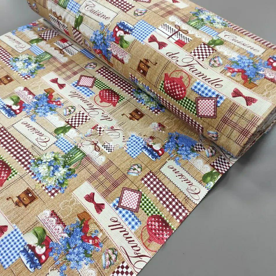 Набивний принт на бавовняній тканині нанесений якісно та рівномірно, насиченість кольору зберігається після значної кількості прань.