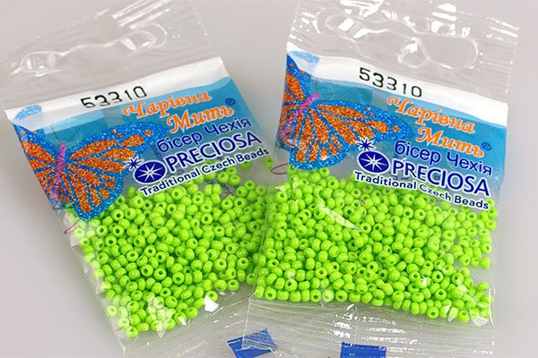 Бисер производства Чехия “Preciosa Ornela”. Размер №10. Изготавливается из цветного стекла и имеет широкую линейку цветов и фактур.Вси бисеринки имеют приблизительно одинаковую форму и размер. Используется в рукоделии для вышивки и бижутерии.