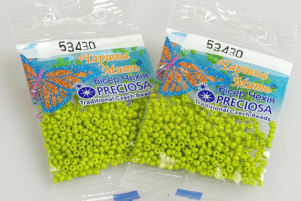 Бисер производства Чехия “Preciosa Ornela”. Размер №10. Изготавливается из цветного стекла и имеет широкую линейку цветов и фактур.Вси бисеринки имеют приблизительно одинаковую форму и размер. Используется в рукоделии для вышивки и бижутерии.