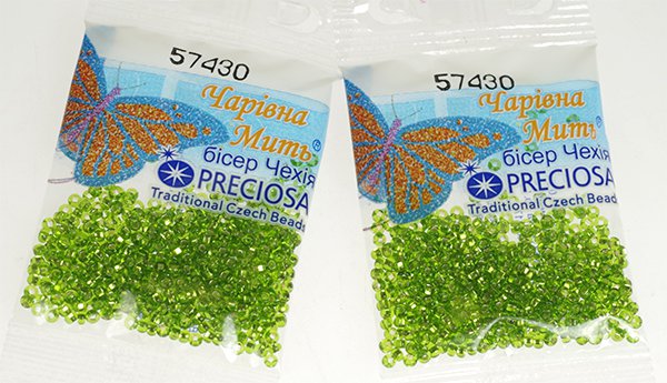 Бисер производства Чехия “Preciosa Ornela”. Размер №10. Изготавливается из цветного стекла и имеет широкую линейку цветов и фактур.Вси бисеринки имеют приблизительно одинаковую форму и размер. Используется в рукоделии для вышивки и бижутерии.