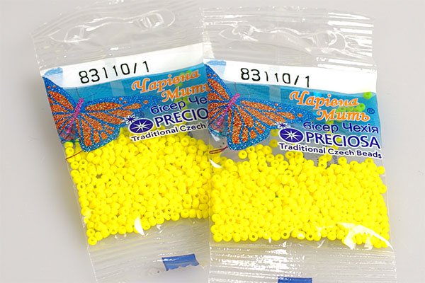 Бисер производства Чехия “Preciosa Ornela”. Размер №10. Изготавливается из цветного стекла и имеет широкую линейку цветов и фактур.Вси бисеринки имеют приблизительно одинаковую форму и размер. Используется в рукоделии для вышивки и бижутерии.