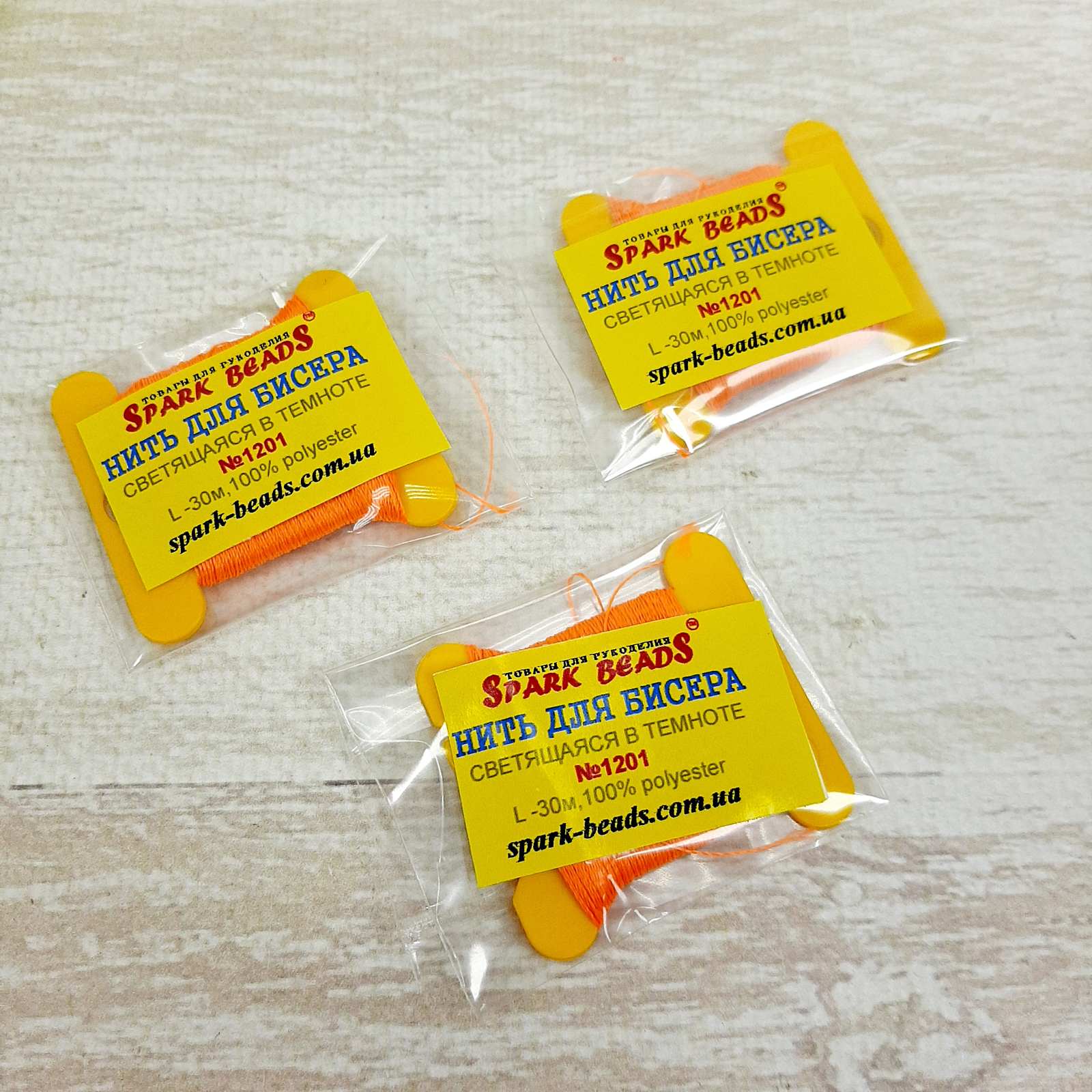 Бісерна нитка Spark Beads 30м №1201 помаранчева (світиться в темряві)
