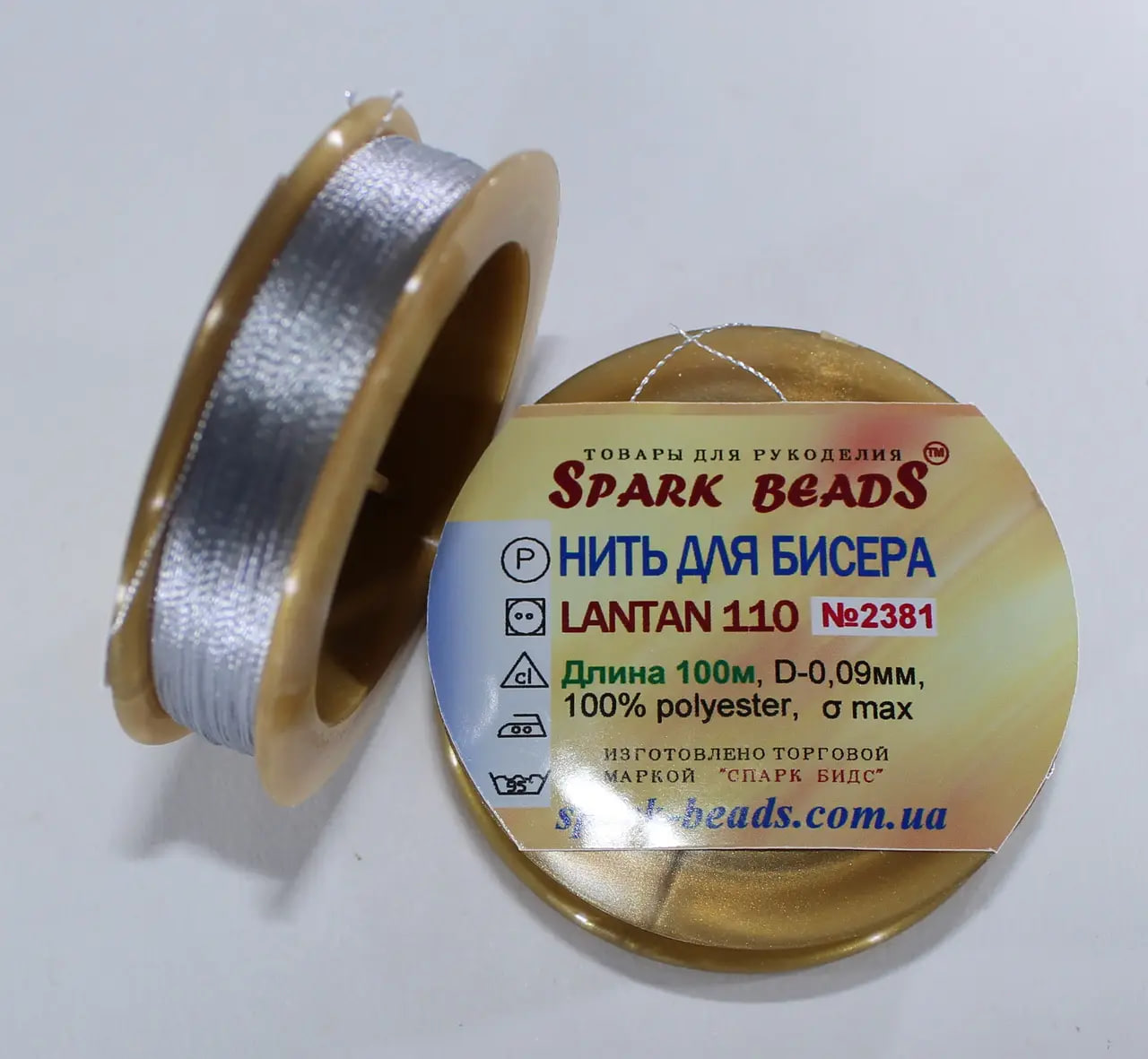 Бісерна нитка Spark Beads Lantan110 0,09мм 100м №2381 сіра металік