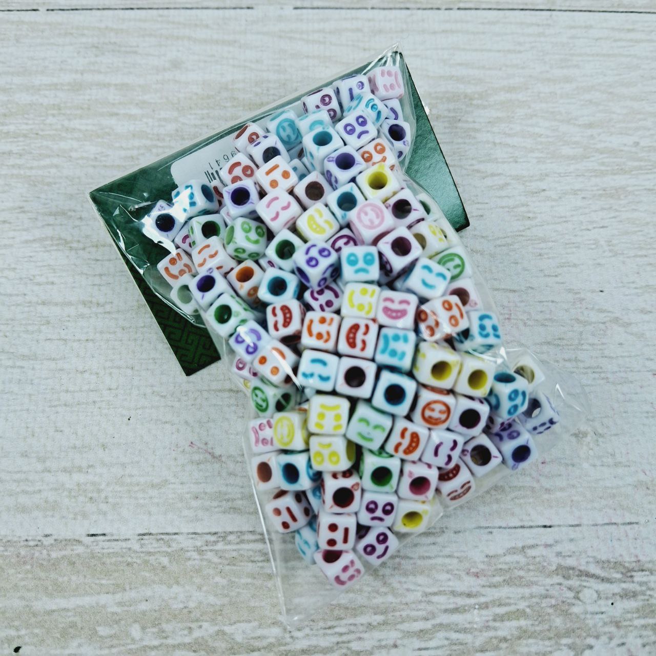 Намистини Акрилові Кубики з виразами на обличчі, Мікс.