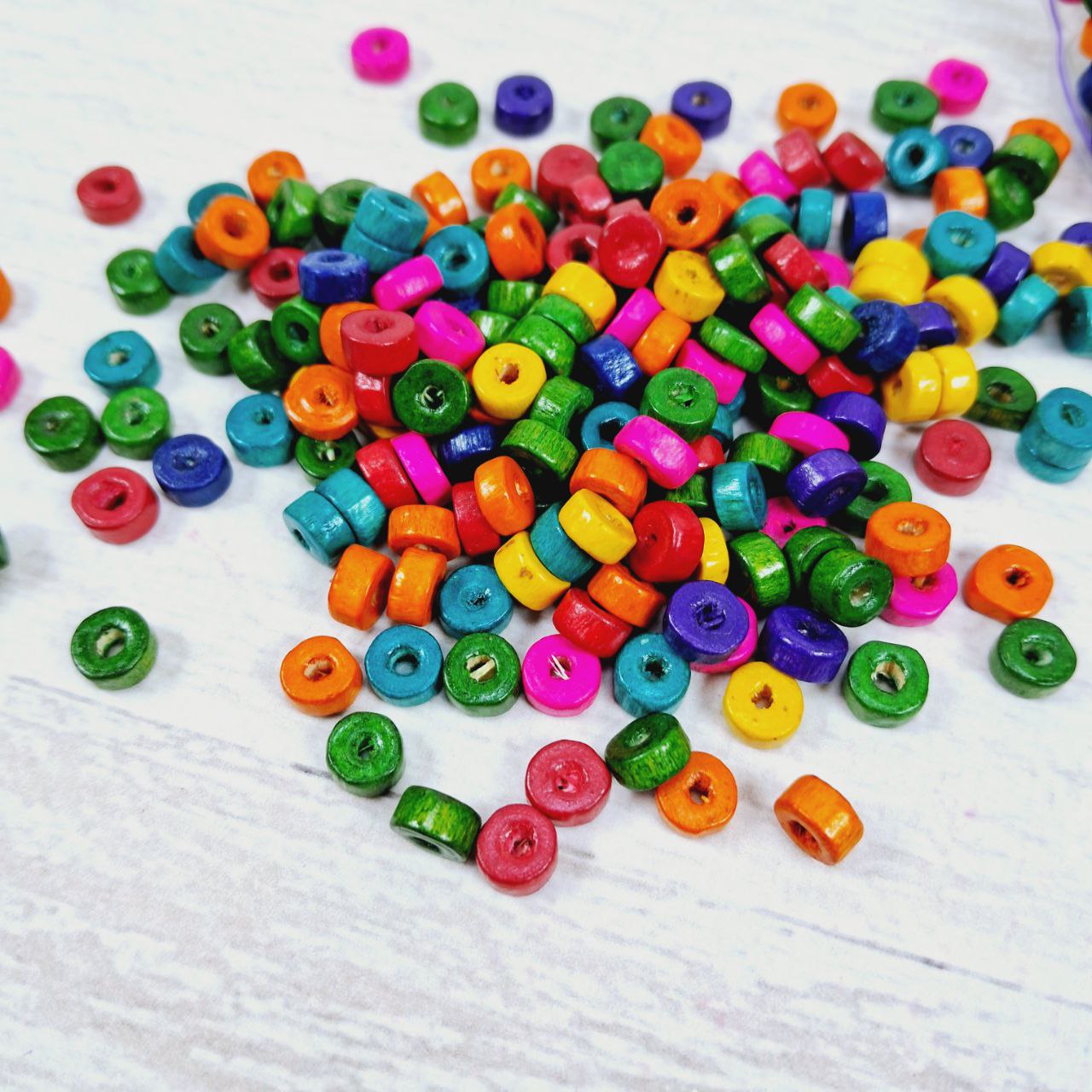 Намистини Дерев’яні Круглі пласкі кольорові 6*3мм 50г