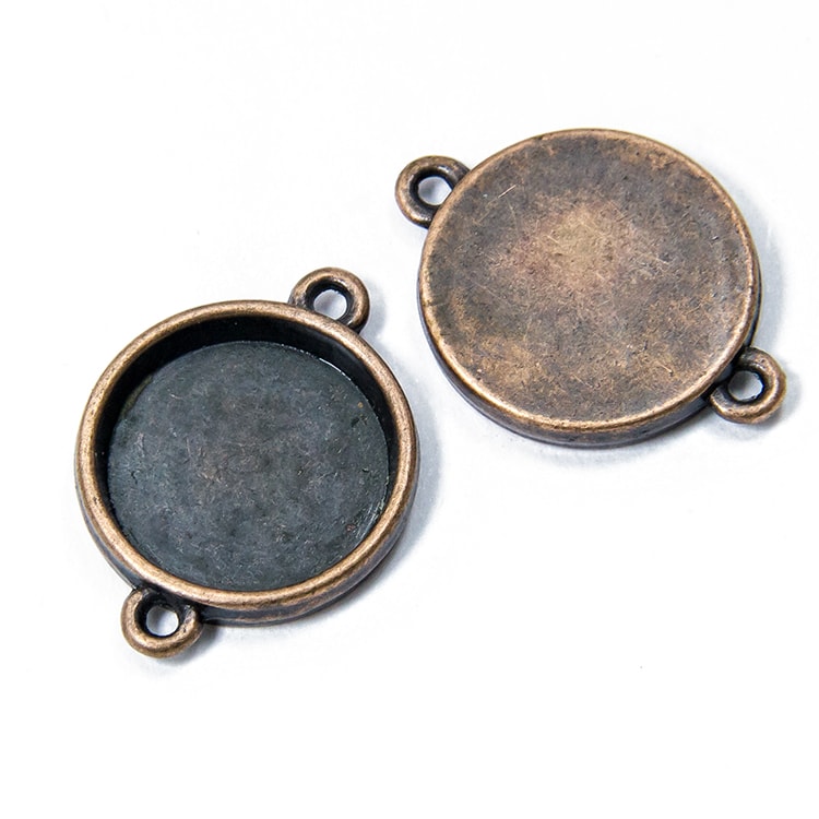 Коннектор-Сеттинг Круглый под Кабошон, 2 отверстия, Металл, Цвет: Медь, Размер: 26x19x3.5мм, Внутренний 15мм, Отверстие 2мм, (УТ100006221)