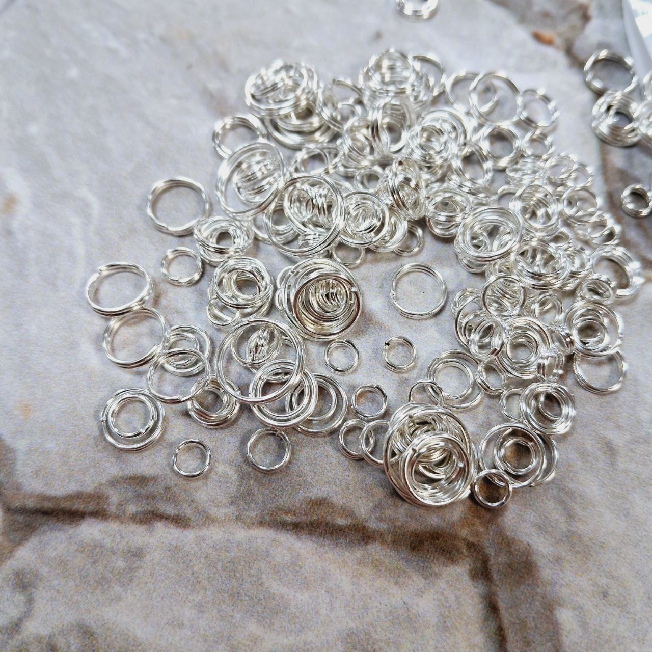толщина 0,7мм, около 120 шт. Колечки одинарные Микс 4-10мм серебро