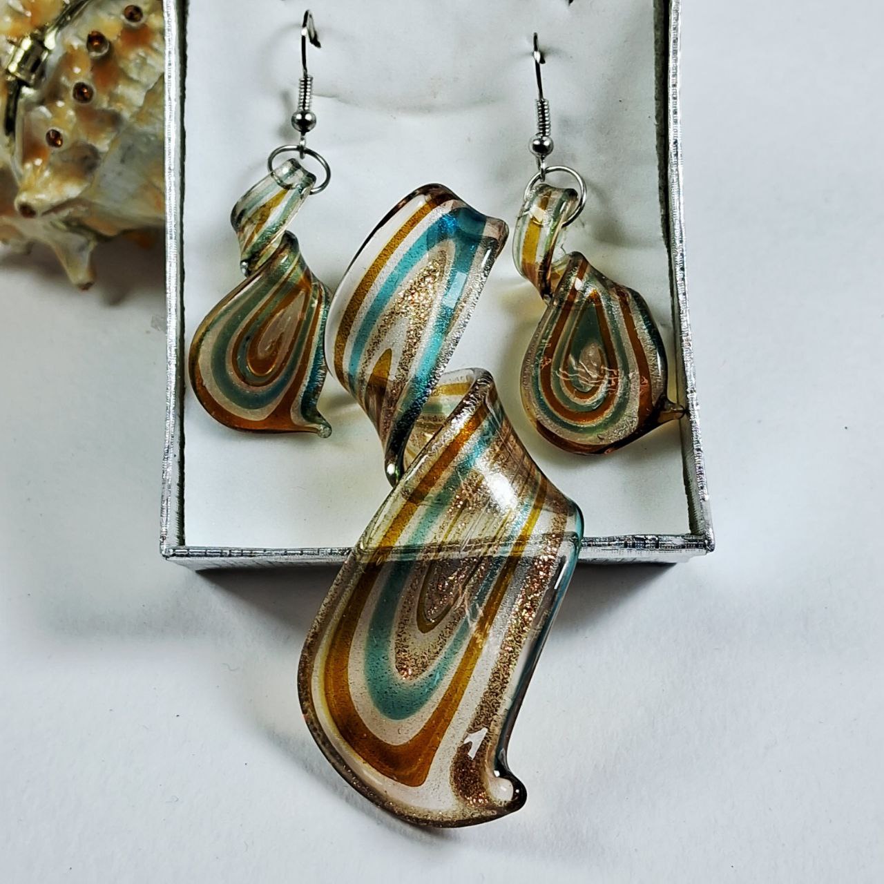 Матеріал: метал та скло Розмір кулона 7,5*3см Розмір сережок 3,5*1,5см