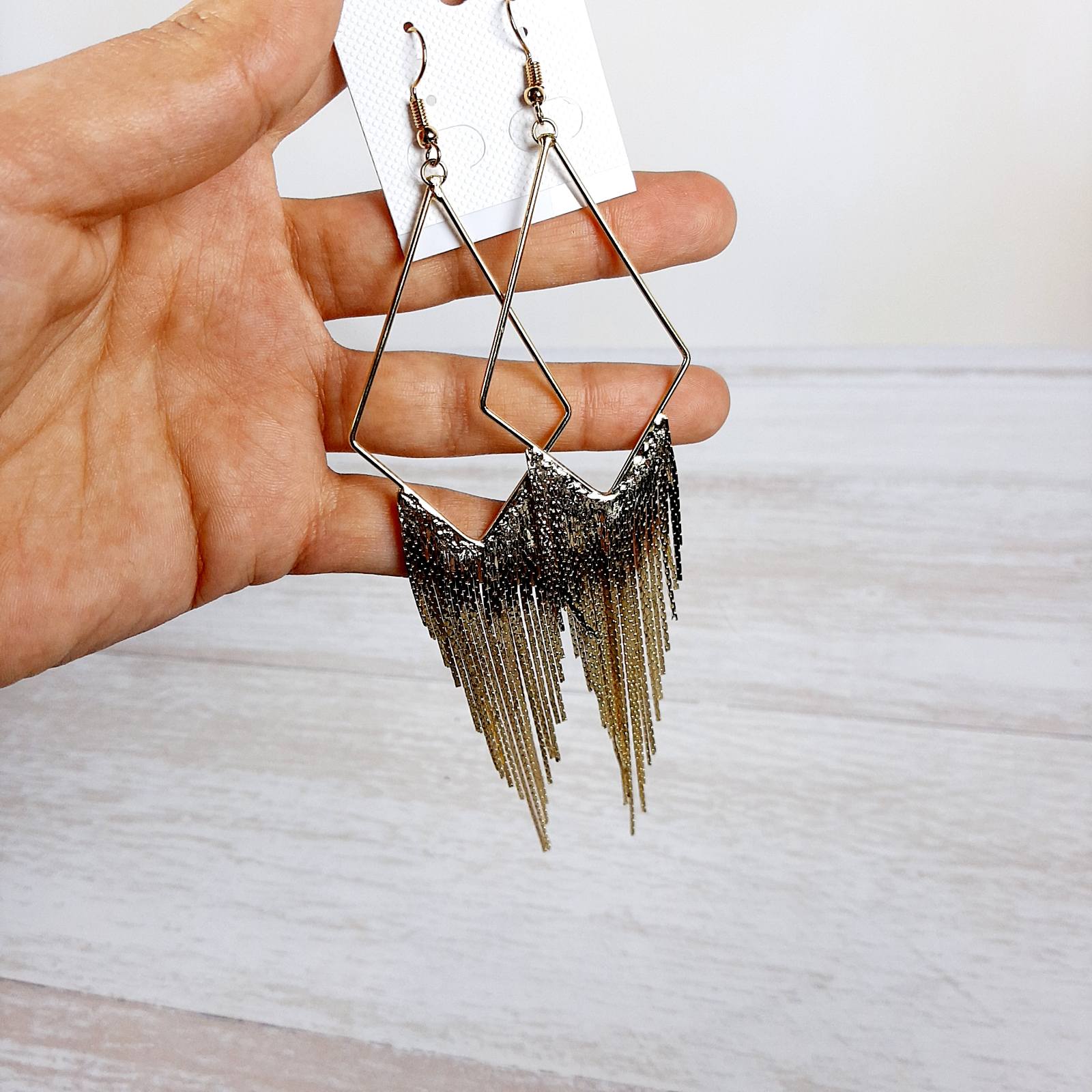 Главная страница » Магазин » Намистини та Фурнітура для біжутеріі » Готові вироби та прикраси » Серьги подвески Ромб золото 15см