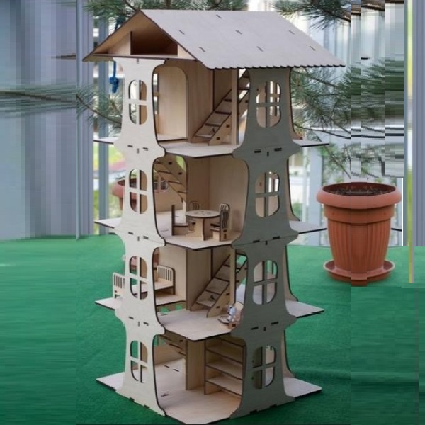 Кукольный домик – мечта. Ваш ребёнок будет просто в восторге. Очень удобный и компактный. А если Вы закажете его в форме конструктора, то слаживание данного домика превратится в игру с ребенком, включая моторику и развитие у него логического мышления. Еще интересней будет если разукрасить или задекорировать заготовку.