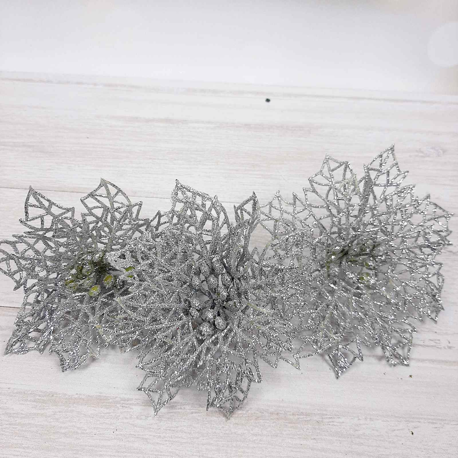 Голова Пуансетии в 12см в глиттере