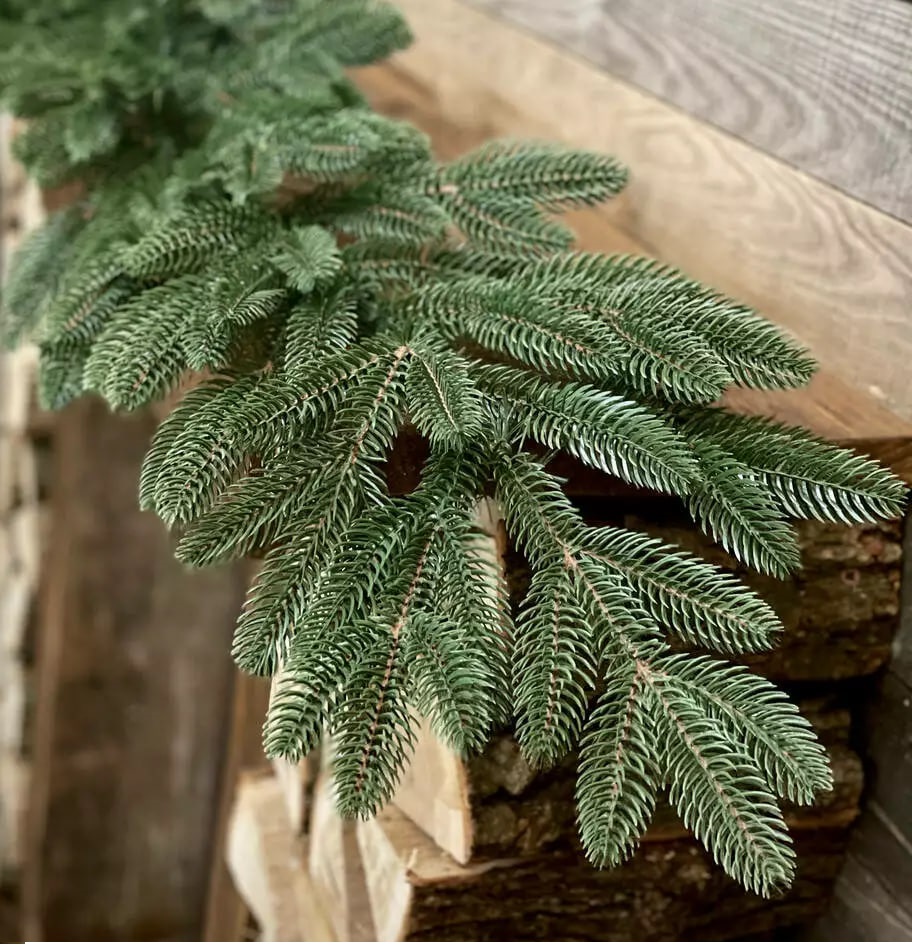 Хвойна гірлянда виготовлена шляхом переплетення штучних гілочок ялинки.