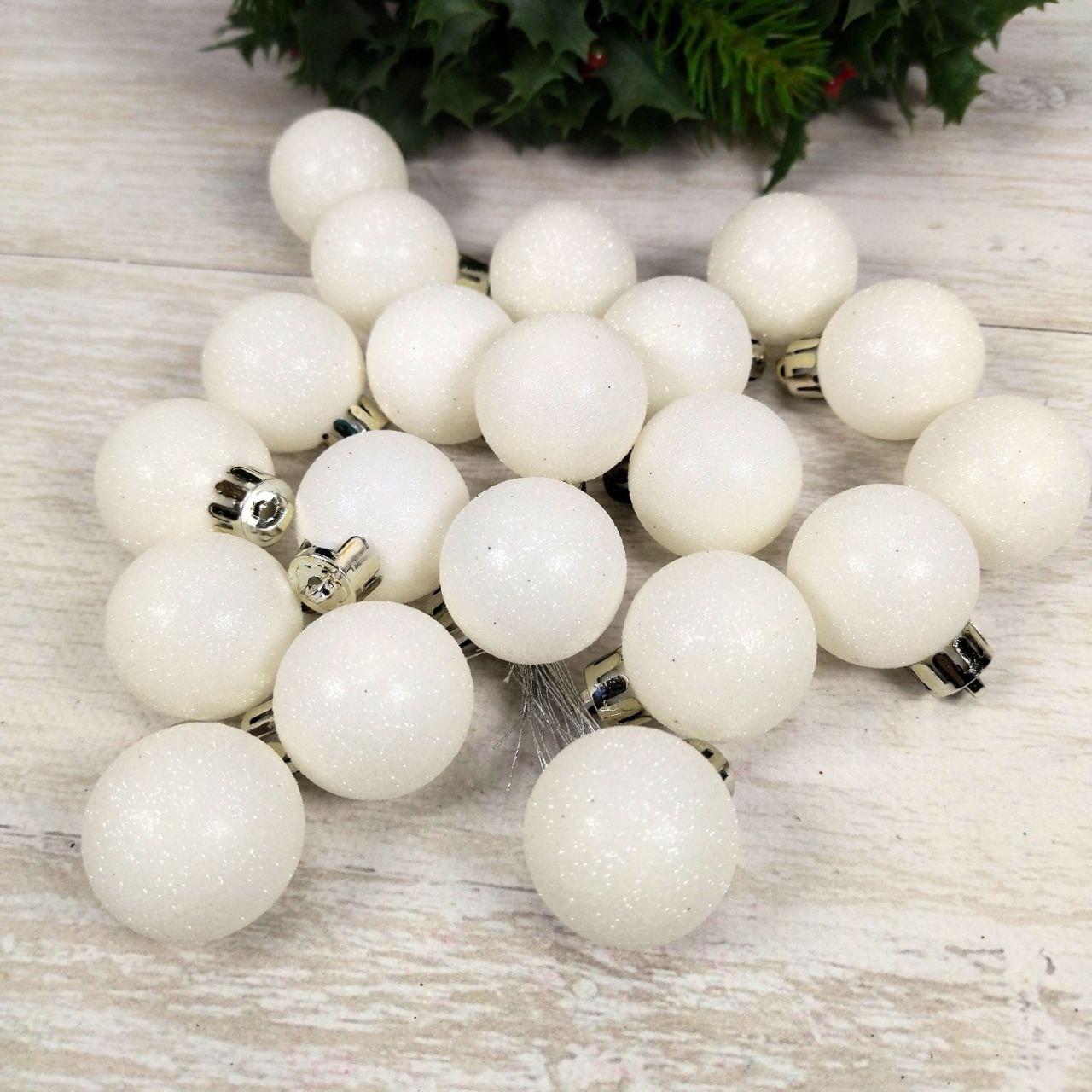Набір ялинкових куль 3см, білий матовий глітер. 20 шт
