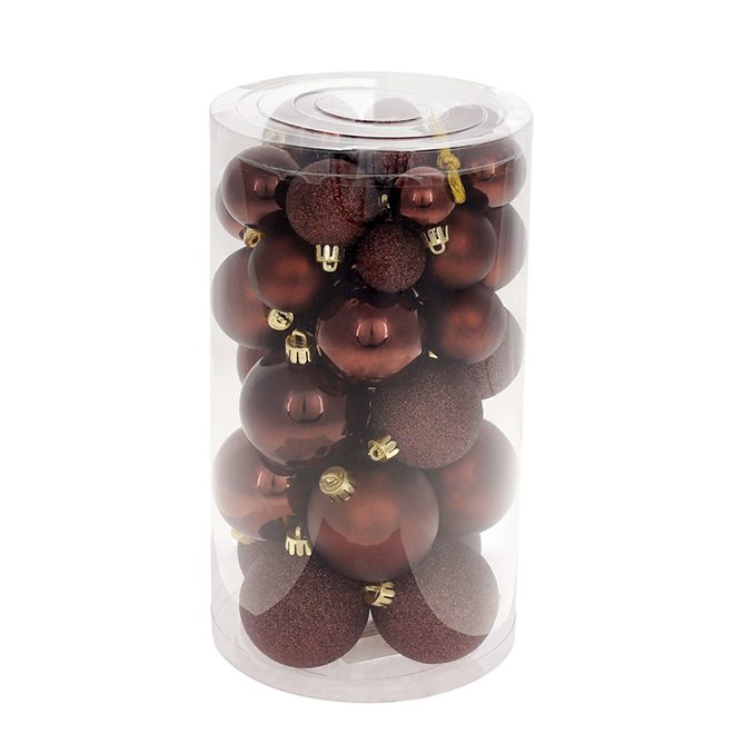 Набір ялинкових куль, колір – темний шоколад, 40шт – 6см, 5см, 4см, 3см: 4шт – глянець, 3шт – гліттер, 3шт – матовий для кожного розміру 147-525