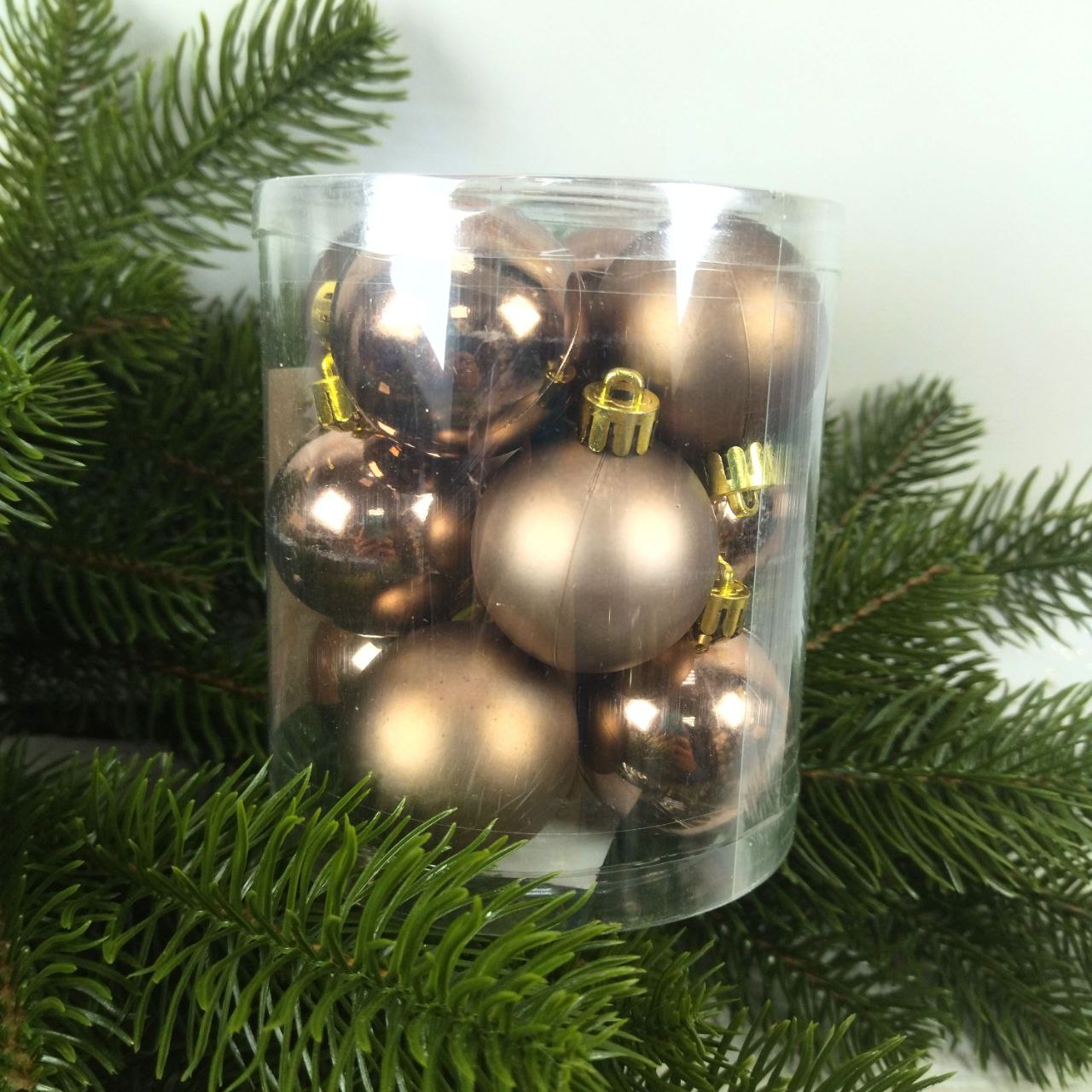Набір ялинкових куль 4см, колір – карамельний мокко, 12шт: глянець, матовий – по 6шт 147-454