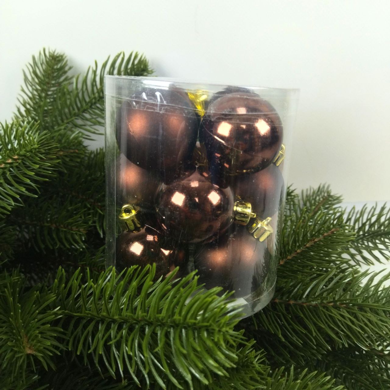 Набір ялинкових куль 4см, колір – темний шоколад, 12шт: глянець та матовий – по 6шт 147-521