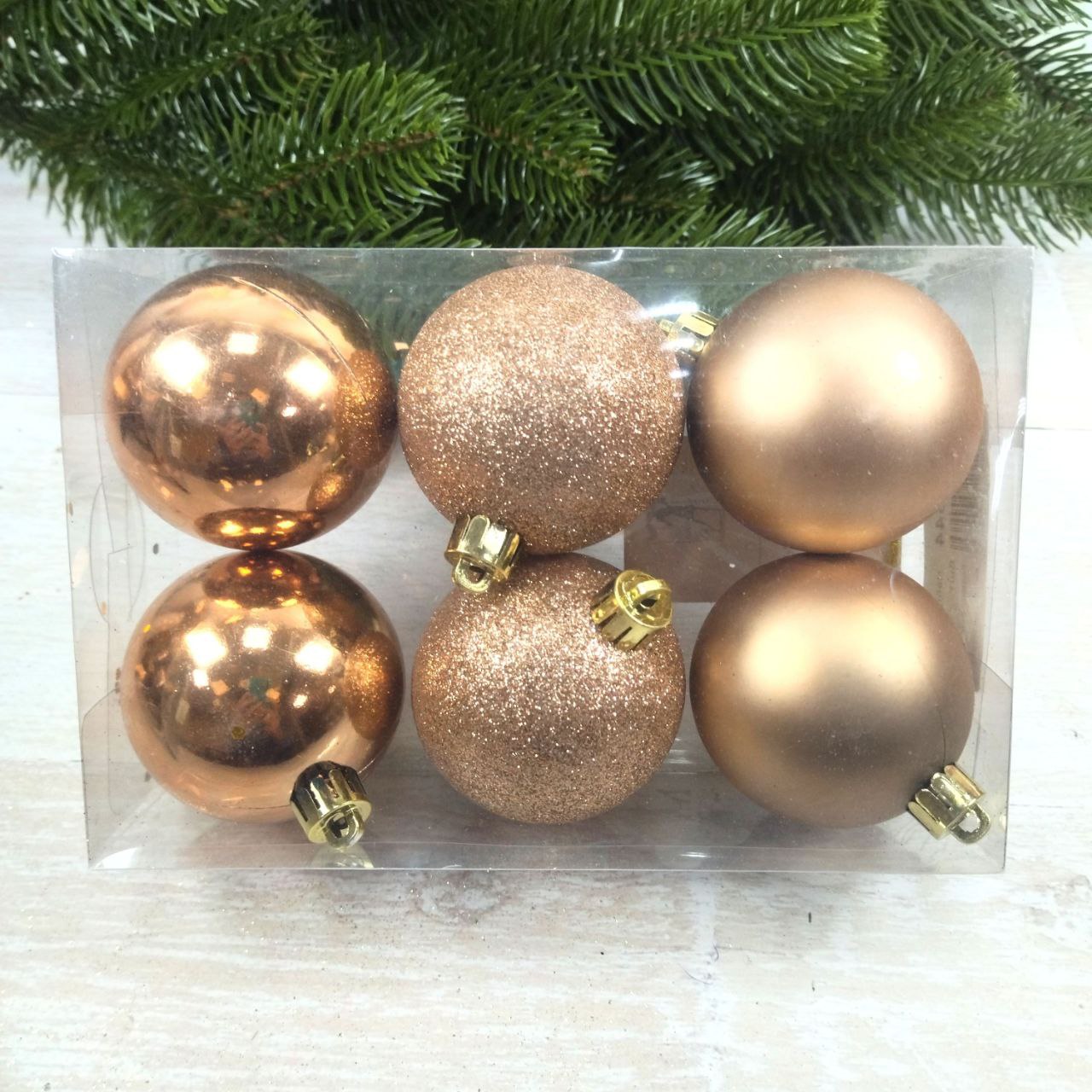 Набір ялинкових куль 6см, колір – карамель, 6шт: глянець, гліттер, матовий – по 2шт 147-544