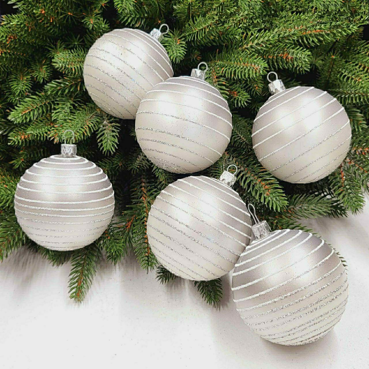 Набір ялинкових куль 8см “ДЗИГА” ОМБРЕ, колір СРІБЛО+БІЛИЙ , 6шт 680230