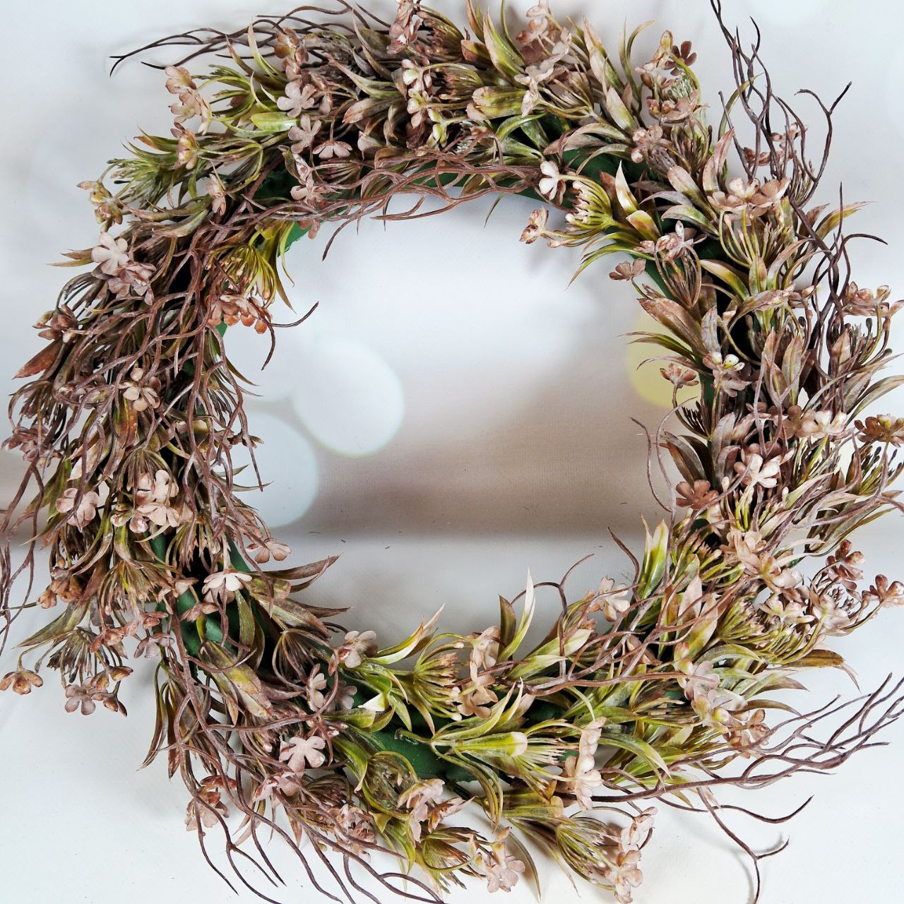 Главная страница » Магазин » Флористика » Сизаль, рафія, мотузка, оазис, основи » Декоративний віночок 30см капучино НТ260