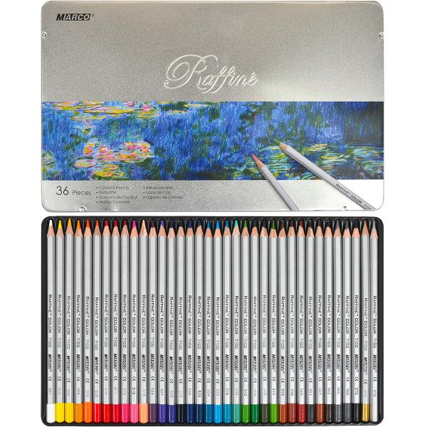 Набір кольорових художніх олівців у металевій коробці, 36 кол. М’які кольорові олівці, які залишають якрій і барвистий слід на папері всіх типів. Кольорові олівці преміум класу Marco не потребують сильного тиску на олівець для отримання яскравої лінії малюнка, що дозволяє без особливого навантаження отримати яскраву картинку навіть найменшому художнику. Рекомендовані до застосування у дошкільних закладах та школах. У металевій упаковці.