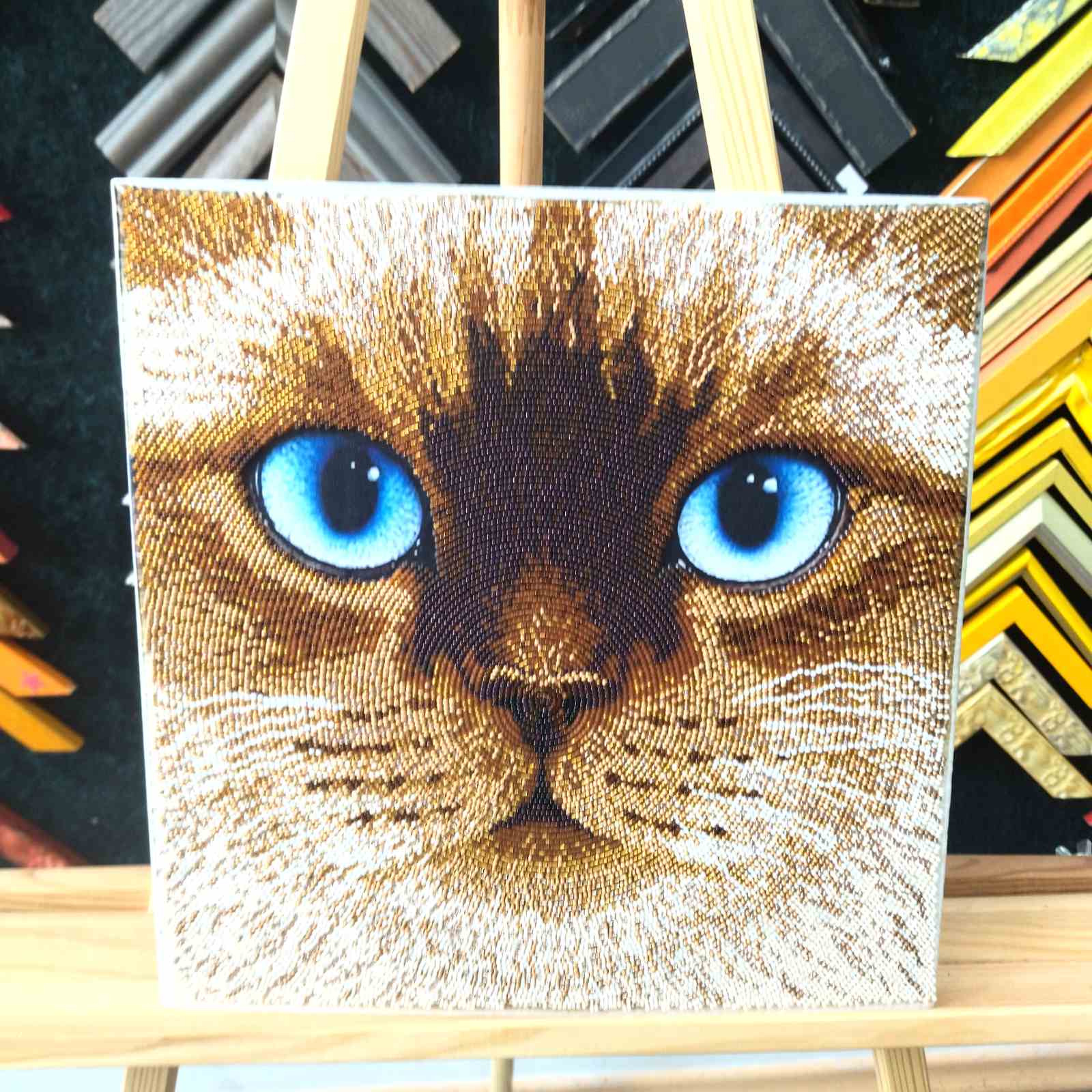 Картина бісером Блакитноокий котик 30*30см