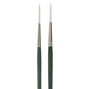 Пензлики Kolibri круглі синтетичні для письма з волосками білого кольору (срібне обтискне кільце, коротка лакована ручка зеленого кольору).