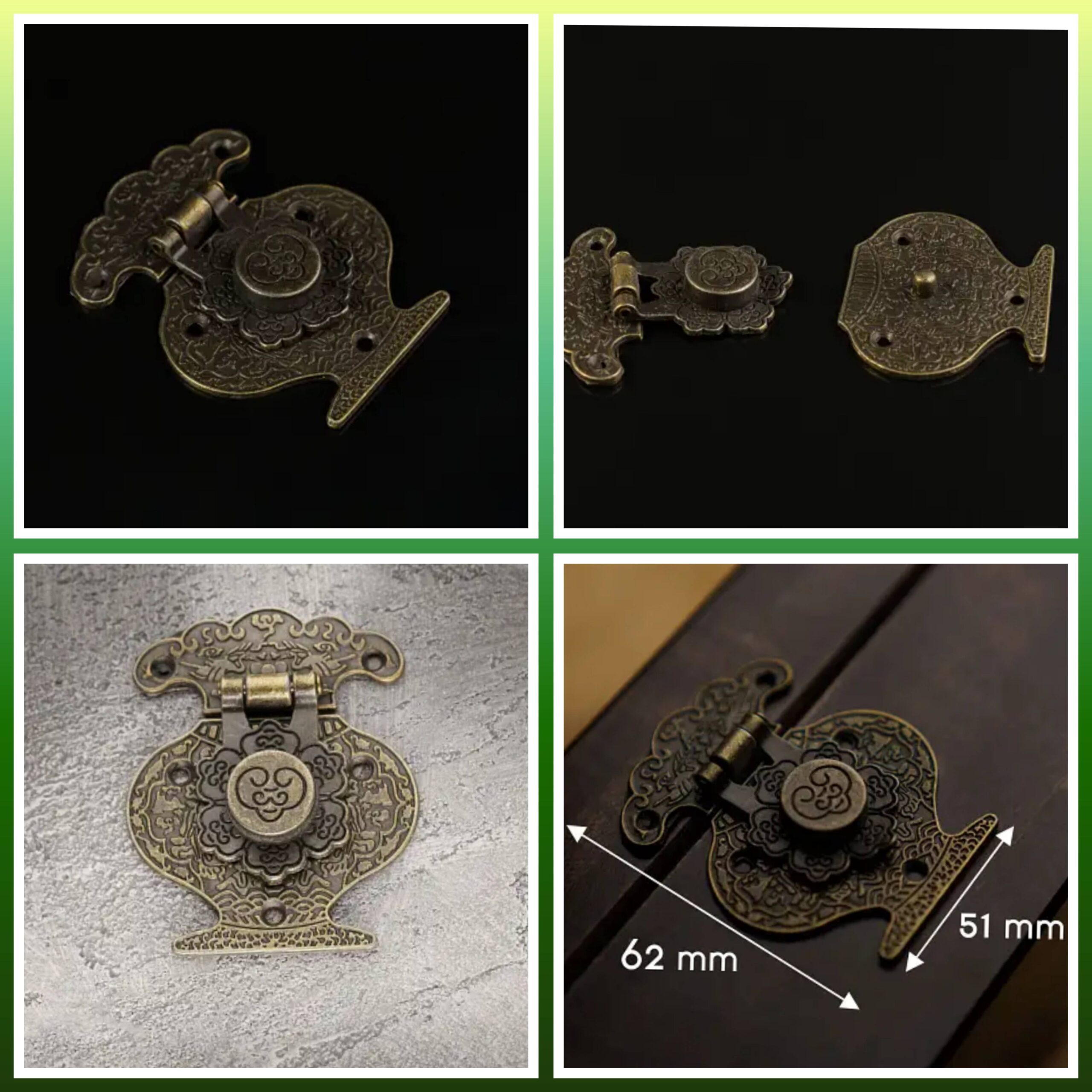 Замок декоративкий Стара латунь 51*62мм А-115