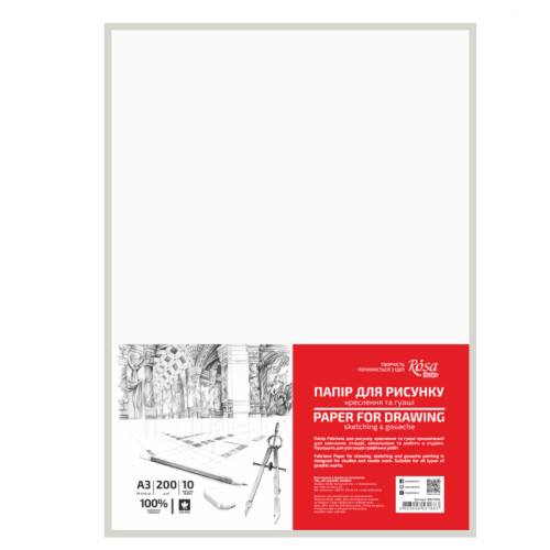 Главная страница » Магазин » Художка » Альбом,папір,блокнот » Папір для рисунку та креслення пакет А3 (29,7х42см) 10л дрібне зерно 200г/м2 ROSA Studio