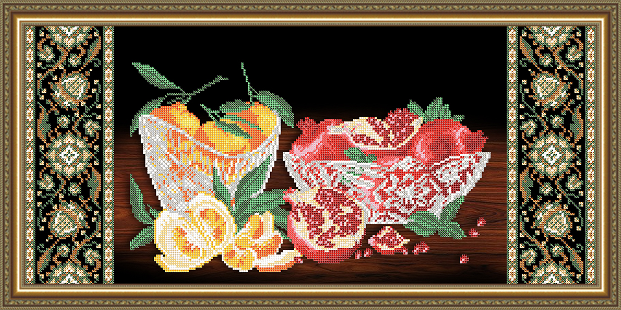 ArtSolo VKA 3110 Хрусталь. Мандарины и гранат на черном, схема под бисер