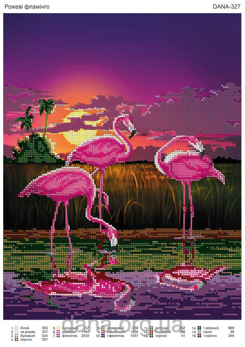 ДАНА-327 Розовые фламинго, схема под бисер
