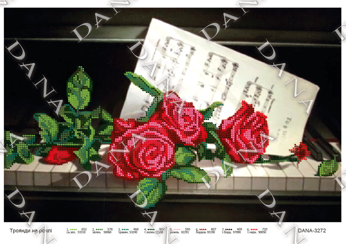 ДАНА-3272 Розы на рояле, схема под бисер